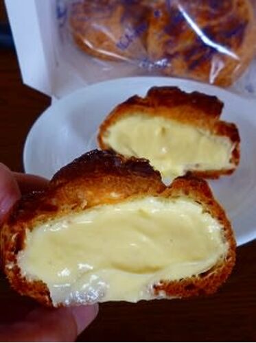 おやつに甘いものがほしくなり、シュークリーム¥120を4つとフルーツ生ロール¥800を買ってみました。 シュークリームは小ぶりながら、カスタードクリームがたっぷり。これで¥120とはうれしい! ロールケーキの計測結果は、重さ330g、長さ16cm、高さ6.5cm…