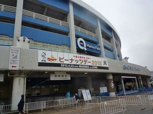 楽しみにしていた今シーズン初観戦でしたが、あいにくの小雨 期待のルーキー藤岡くん♪ はピリッとしないピッチング(/_;) それでも、なんとか逆転勝ち!応援しに行ったかいがありました~ 中後初勝利!! 「千葉は落花生日本一 ピーナッツデー2012」で チーバ…