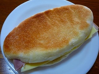 2009-10-15 本日の朝ごパン-こだわり酵母パニーニ パルシステム パルシステムのこだわり酵母シリーズでパニーニ5個298円を買いました。 原材料は小麦粉、三温糖、ホシノ天然酵母、食塩(自然塩「海はいのち」)、水のみです。 トーストしてから同じくパルシステムのボンレスハムとスライスチーズをはさんで朝ごパン。 外側はパリッと、中はもっちり、生地はちょっと甘かったけど美味しゅうございました。 にほんブログ村 人気ブログランキングへ blogramランキング参加中!