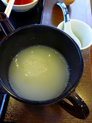 蕎麦湯はどろりとした濃厚タイプ。ぶっかけの薬味おろしそばを注文したずんちには、蕎麦猪口とれんげも一緒に持ってきてくれる心遣いもうれしいですね。2人で全部飲み干してしまいました。大満足です♪