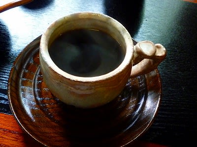 県道から敷地に入ると手前が駐車スペース、正面になにやら風情のあるお店があります。引き戸を開けて入ると、中は古民家風。和食器や雑貨のショップも兼ねているようです。