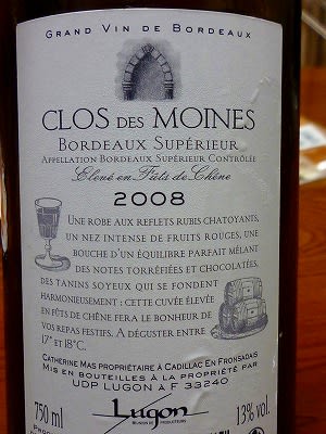 クロ・デ・モワンヌ[2008]年・オーク樽熟・AOCボルドー・シューペリュール