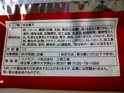 今年は230円210kcal、神戸「宝笠印」のブランド小麦粉を使用し、苺のピューレを練り込んだスポンジになってます。