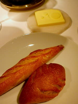 お料理は、事前に連れのずんちと公式サイトで予習し、「より道」 と「牧場」 (各4,800円)をそれぞれ1つずつと決めてきました。でも、今日から内容が変わったそうです。当初は、あたくしは「牧場」のつもりでしたが、ずんちが「牧場」を選んだので、急遽交換。で、3種のワインコース3,500円もつけちゃいます。料理にあわせた白2種、赤1種のワインが楽しめるそうです。