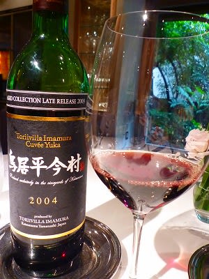 ワインは、鳥居平今村 キュヴェ・ユカ 2004 シャトー勝沼の赤ワイン 小豆には国産ワインがあうとのことでした。