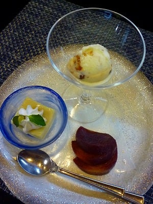 ・デザート:栗と小豆のアイスクリーム、柿のコンポート、栗のムース
