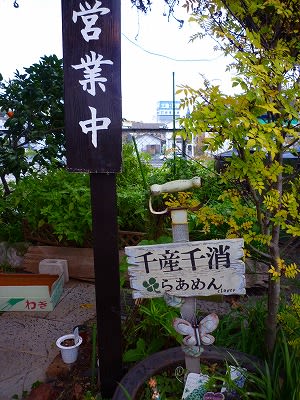 ラーメン屋さんらしからぬおしゃれな外観、「千産千消らあめん」の看板が迎えてくれます。