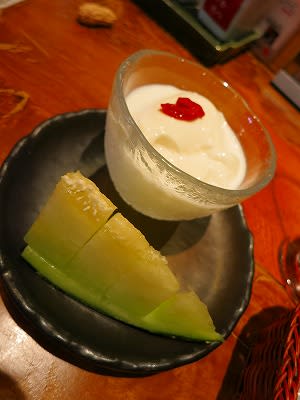 デザートは何かと尋ねると「杏仁豆腐とメロン」とのこと。プラス100円だったらこれはデザートもつけるしかあるまい(…とさらに言い訳)。