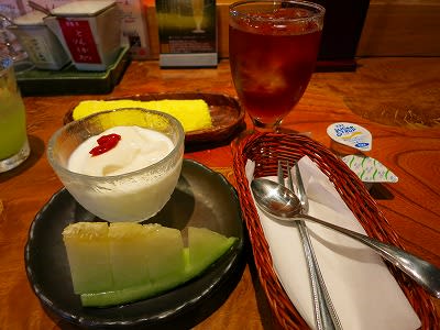 食後には、デザートと一緒に冷たいおしぼりもやってきました。