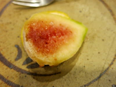 なんだろうとひっくり返してみると、うっすら緑の無花果です。