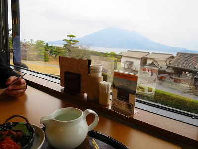 14:40 仙巌園内の御膳所桜華亭で昼食 桜島がよく見えます♪