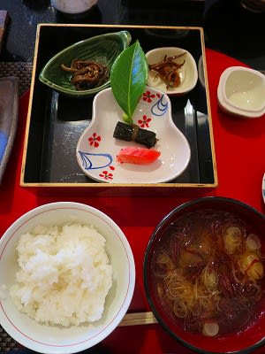 食事:仙北平野産新米あきたこまち 妙乃湯名物きのこ汁 香の物