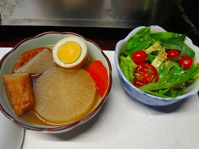 サラダ、おでん、鯖の天ぷらもついて、シニア夫婦の我が家は食べきれずに残してしまいました。ごめんなさい。