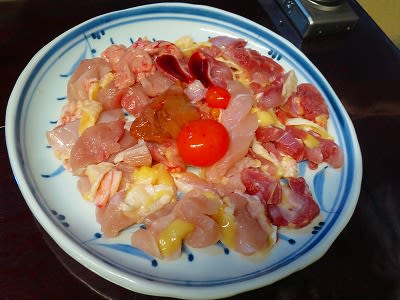 地鶏はいろいろな部位がまざり、野菜もたっぷりです。