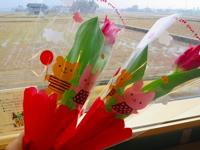 南砺市観光協会のみなさんからはチューリップのプレゼント♪