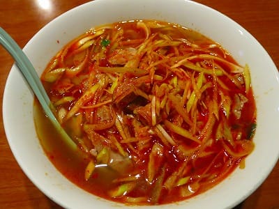 葱チャーシューラーメンは見るからに辛そうで、3種類のスープを楽しめました。