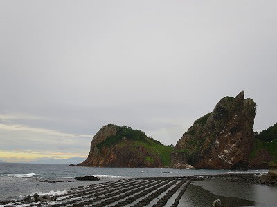 展望台から雨に煙る仏ヶ浦を眺めました。