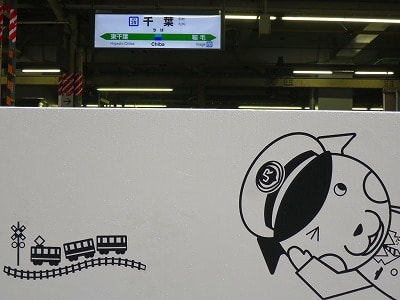 千葉駅北口広場の、10番線の線路に面した壁にJR千葉支社のマスコットキャラクター「駅長犬(えきちょうけん)」が描かれているのに気が付きました。