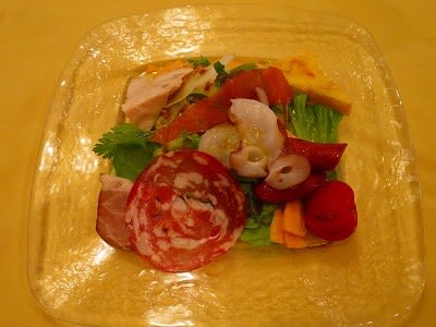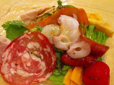スモークサーモン、タコ、カレー風味の鶏ハム、チョリソーなどなど。