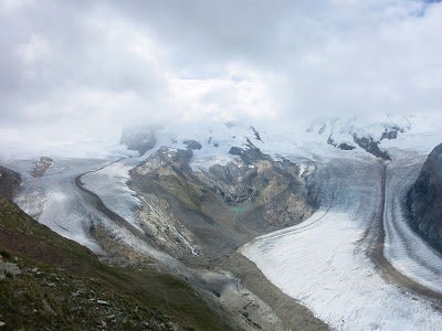 ゴルナーグラート展望台から氷河は見えるけど、マッターホルンは雲の中。