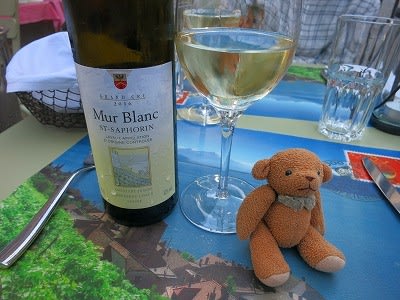 レマン湖のほとりの小さな村サン=サフォランのブラッセリーでワインを飲みながらディナー。