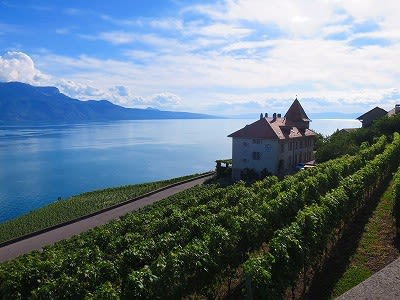レマン湖の北岸、段々の葡萄畑のど真ん中!