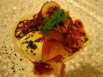 冬瓜のポタージュ 烏賊の墨煮 レモンピール