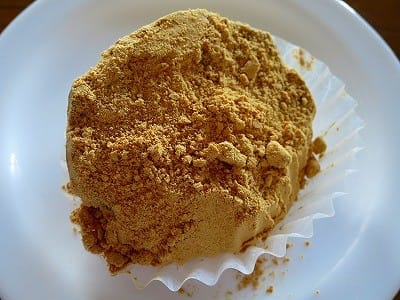 一回り小さいおはぎにきな粉がたっぷりかかっているので、甘さも控えめに感じます。