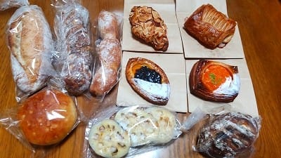 ブルーベリーデニッシュ、オレンジデニッシュ、レンコンタルティーヌ、大納言、クロワッサンロースハム、イチジクのパンなどなどパン三昧できました。