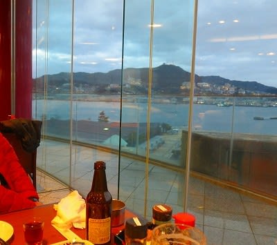 窓際のテーブル席からは、長崎港が見渡せます。素晴らしい!