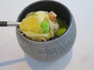 特にとうもろこしのムース、菊のソース、山形のだし風ソースは丁寧な説明を聴いてわくわく、食べて納得。